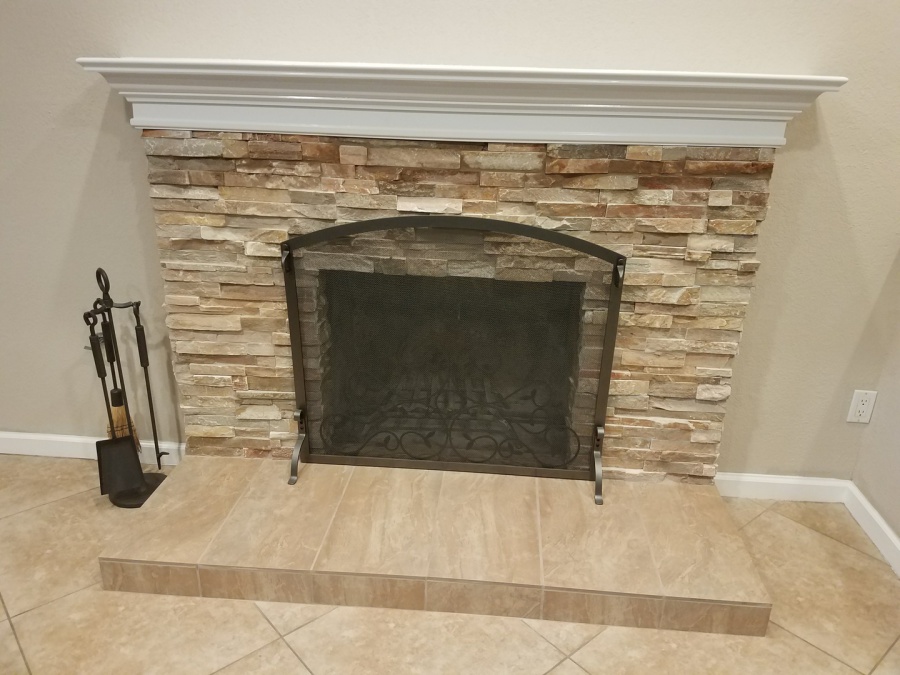 This homeowner decided to reface their fireplace twice over the past 20+ years of owning the home and bring it into the 21st Century.